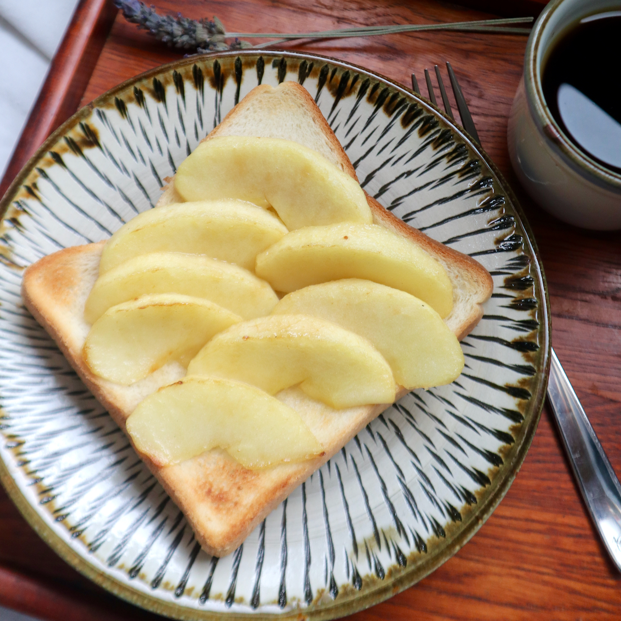 伯母が教えてくれたりんごトースト。美味しいから試してみてと言っていて、バターもりんごもあったから試してみたらおいしくて。