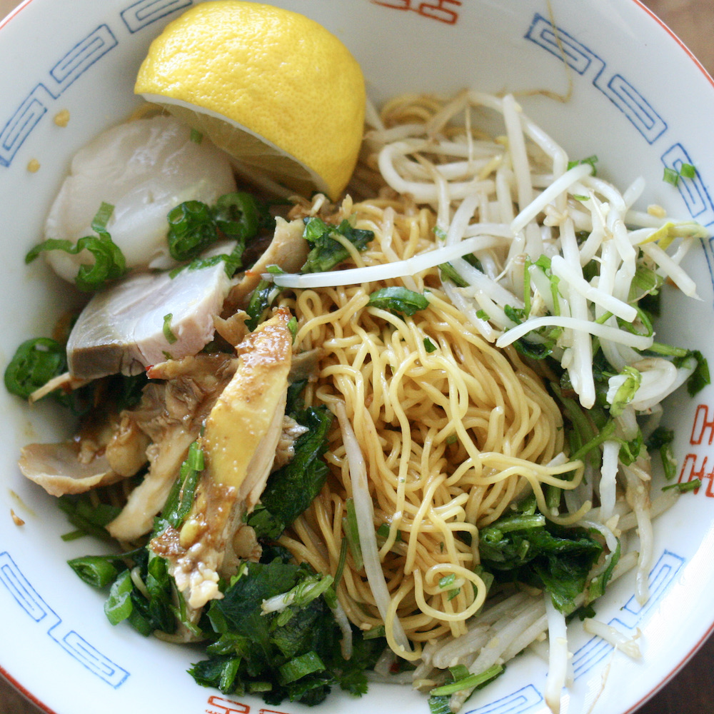 本当のバミーヘーンは豚肉が乗ることが多いよう。タレもアレンジしたので、バミーヘーン風としましたが、これでもなかなか美味しいです。このタレだと甘さのある冷やし中華的な味になるので、冷やし中華のタレがお好きな方は好きだと思います。