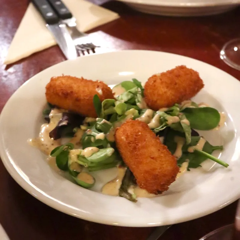 家族が食べたいと言っていたKroketten(オランダのコロッケ)は、エビとゴートチーズのコロッケを2種類頼みました。左がエビのコロッケ、右がチーズのコロッケです。