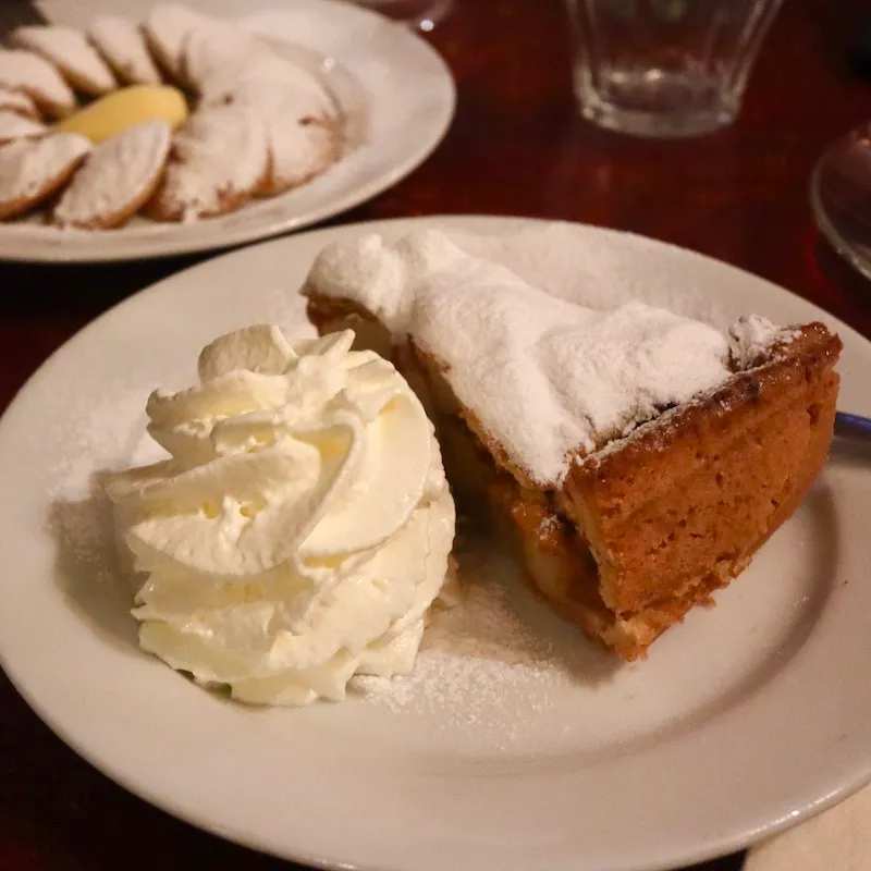 アップルパイの隣にもりもりのクリームがオランダ風。郷にいいっては郷に従えでたっぷりつけて食べたら、やっぱり美味しい!