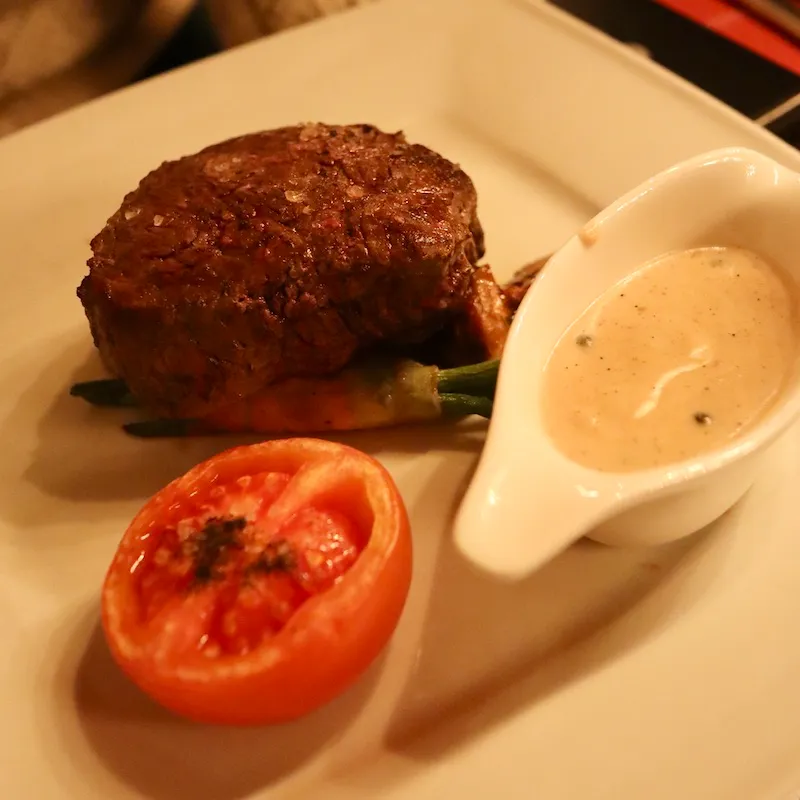 右 Dutch steak(オランダ風ステーキ)・・・味は普通のステーキだったしソースも変更可能だったので、どこらへんがオランダ風かわからなかったオランダ風ステーキ。