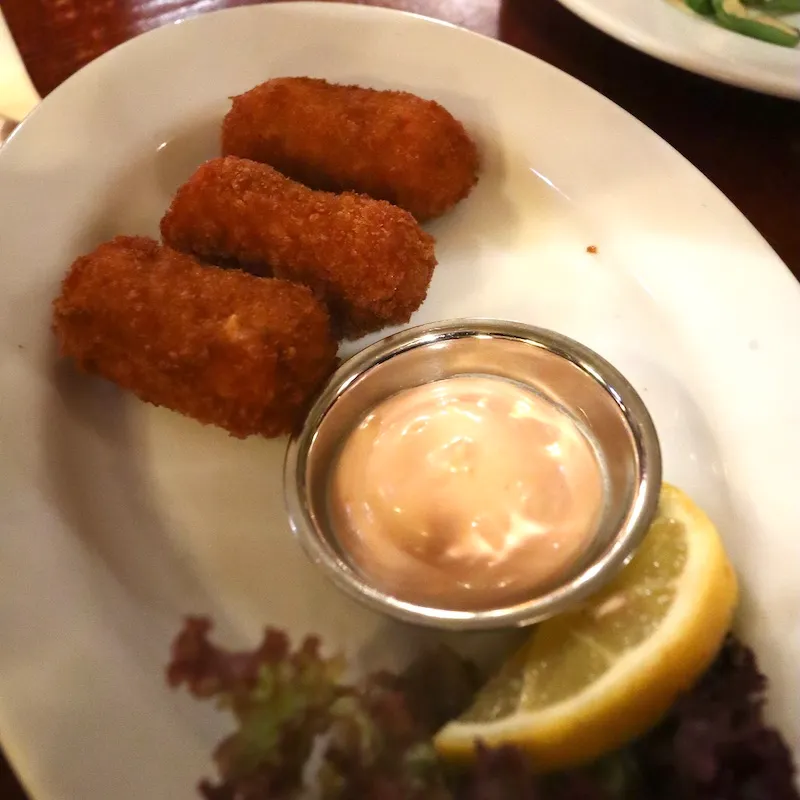 ビターバレンを含めたクロケットは軽食/スナック的な要素がありますが、クロケットはより食事的で、パンに挟んだりする感じ。対してビターバレンは、ビールとの相性がいいと書かれていることが多く、カフェはもちろんお酒が飲める場所でも供されるおつまみ的要素が強めな気がします。