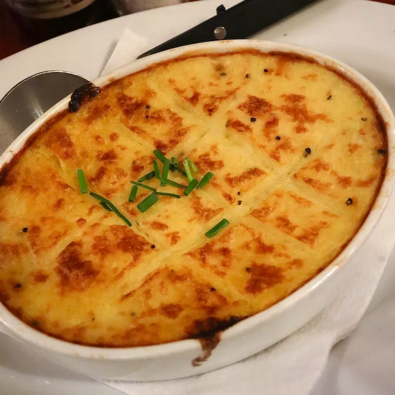 左 Oven dish (オーブン焼き)・・・オランダ料理レストランのメイン目玉料理に入っていたシェパーズパイのようなオーブン焼き。とっても美味しかったけれど、オランダ料理なのかは不明です。ただ、オールドアムステルダムチーズが使われていました。