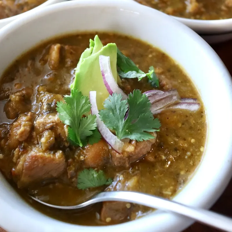 Chili Verde(チリ ヴェルデ、「緑色の唐辛子/チリ」という意味)とも呼ばれ、アメリカ南西部、特にニューメキシコで人気の煮込み料理です。