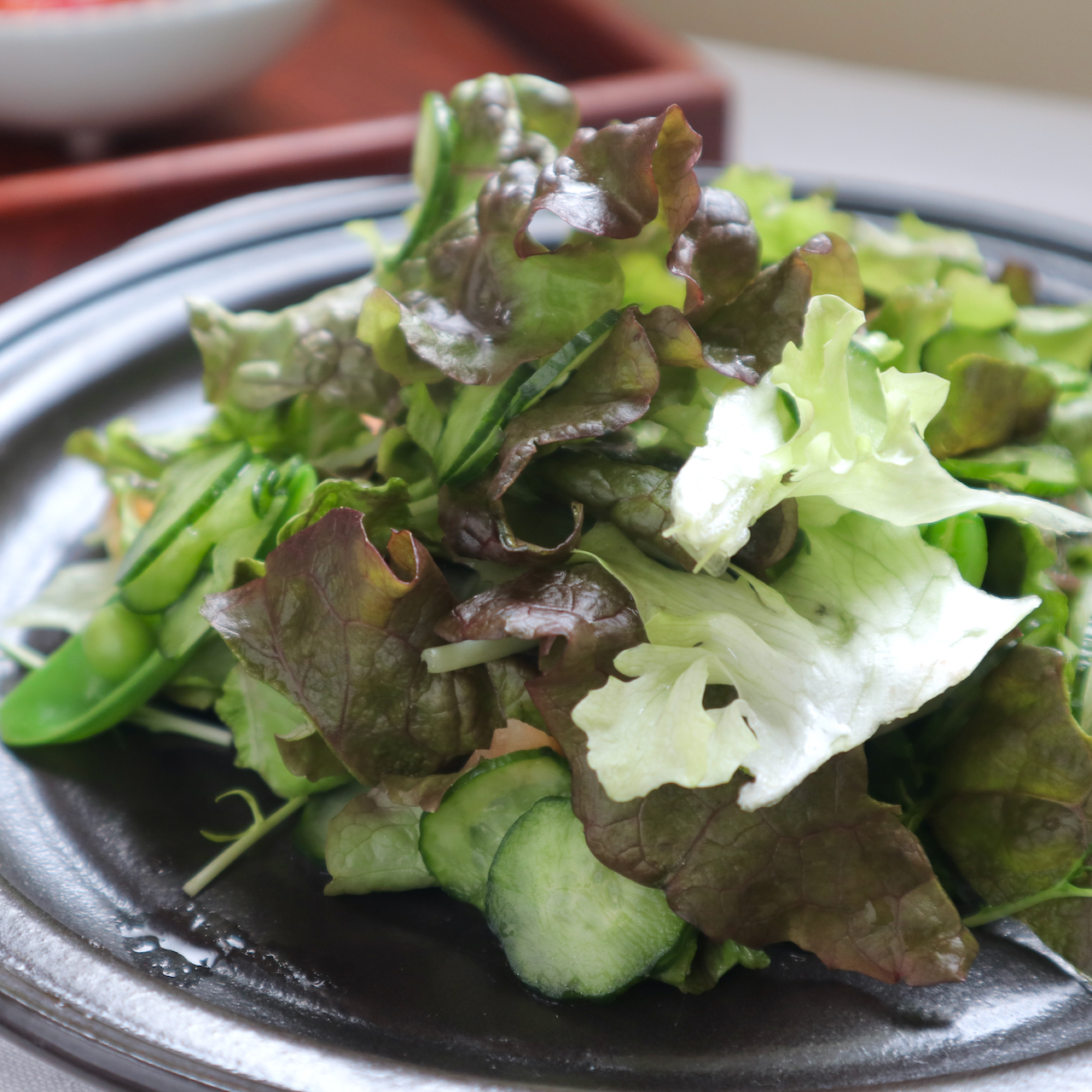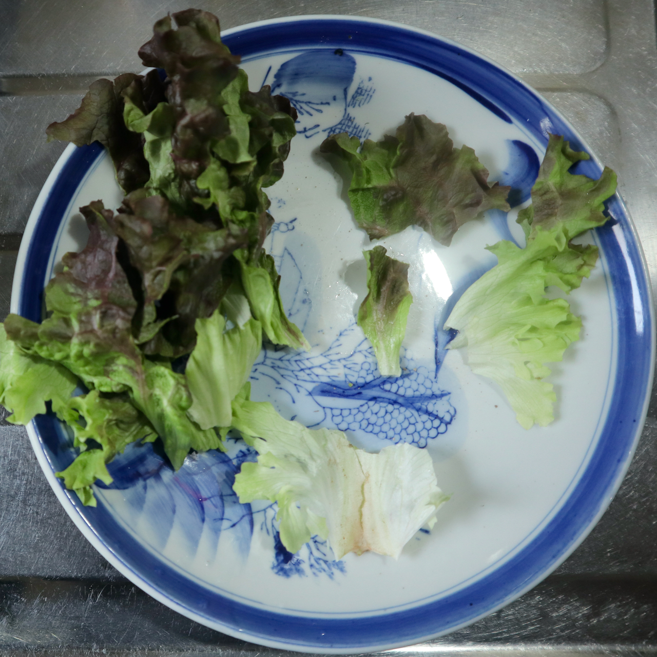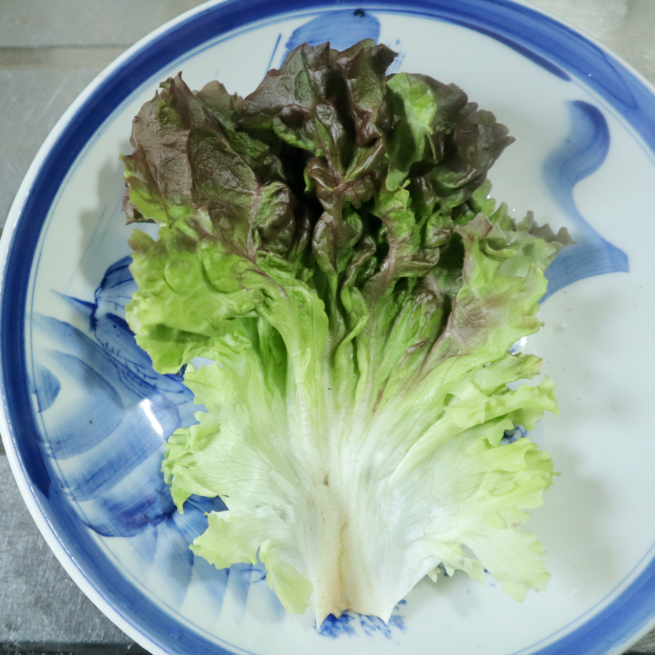 レッドリーフの葉は張りがなく、水分が多く残っていれば潰れてしまう柔らさ。この柔らかさが食べやすくてよく買う理由とはいえ、この柔らかさゆえ、レッドリーフのふりふりした可愛さはお皿の上でつぶれがちになるを、ずっと残念に思っていました。