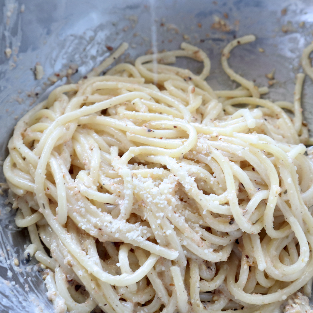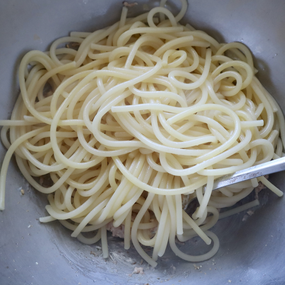 スパゲッティを茹でる時間は必要なものの、茹でて混ぜるだけ。レトルト並に簡単で、時短レシピ。でも、味は花丸です!