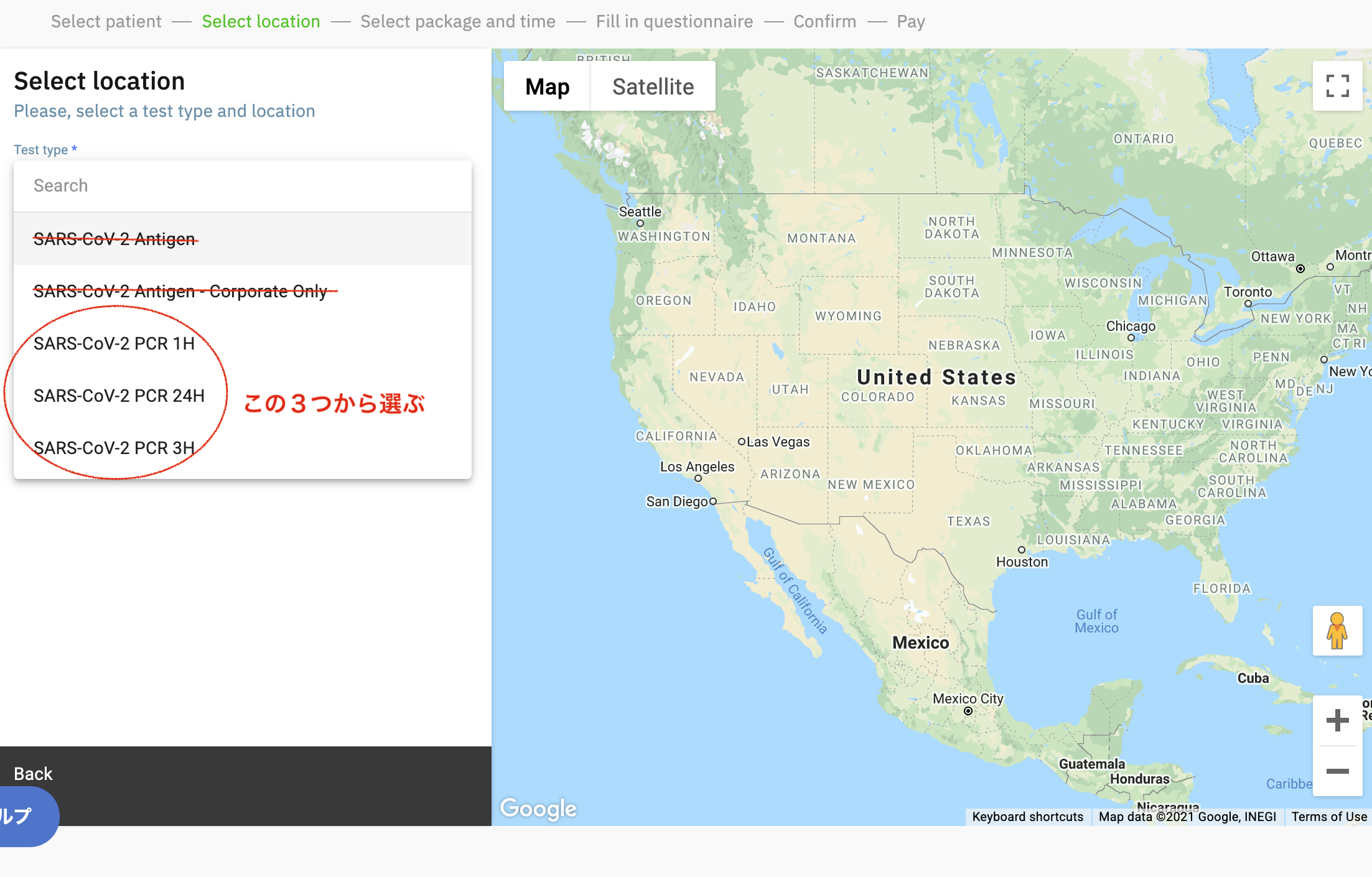 しかし実際予約を取ろうとすると、各検査場所で受けれるPCRテストの種類と、予約可能時間が違いました。