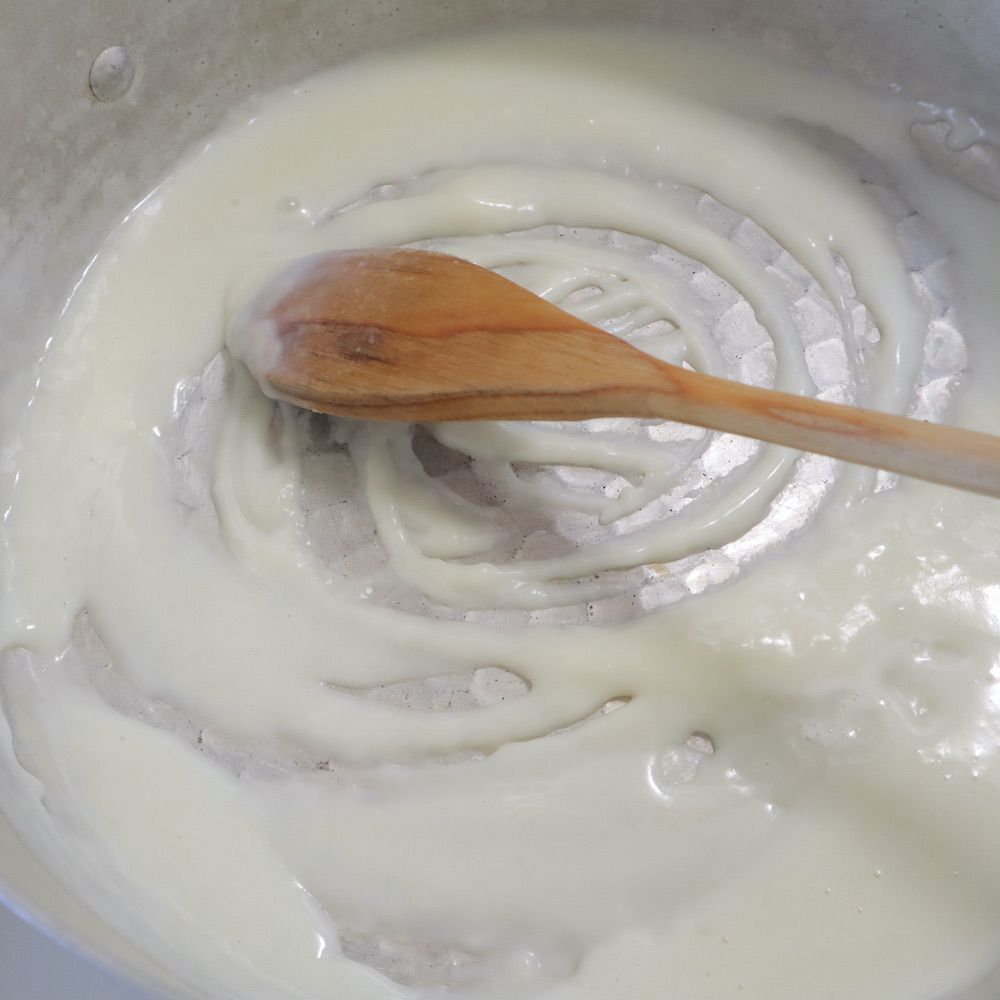*今回は味のついてるマカロニ&チーズを使っていますが、味が薄かったのと、もう少しチーズ感が欲しかったこと。またひとまとまりになるように少々の汁気が欲しかったので、この工程を加えました。けれど用意したマカロニ&チーズが、丸めて揚げれるような質感であれば必要ありません。