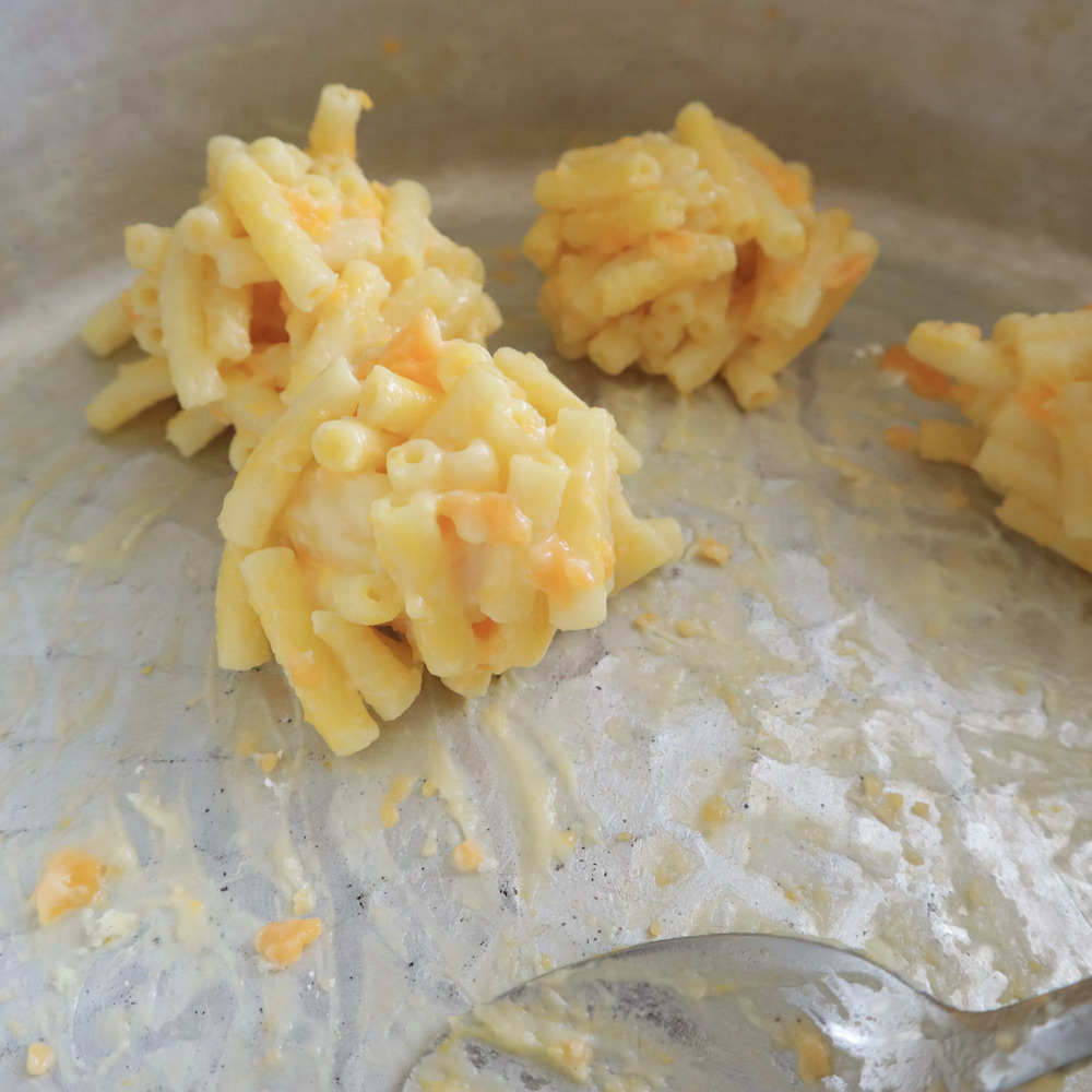 *最初にボール状に丸めた時、強いぐらいぎゅっと握ると、その後マカロニ&チーズが崩れにくくなる。
