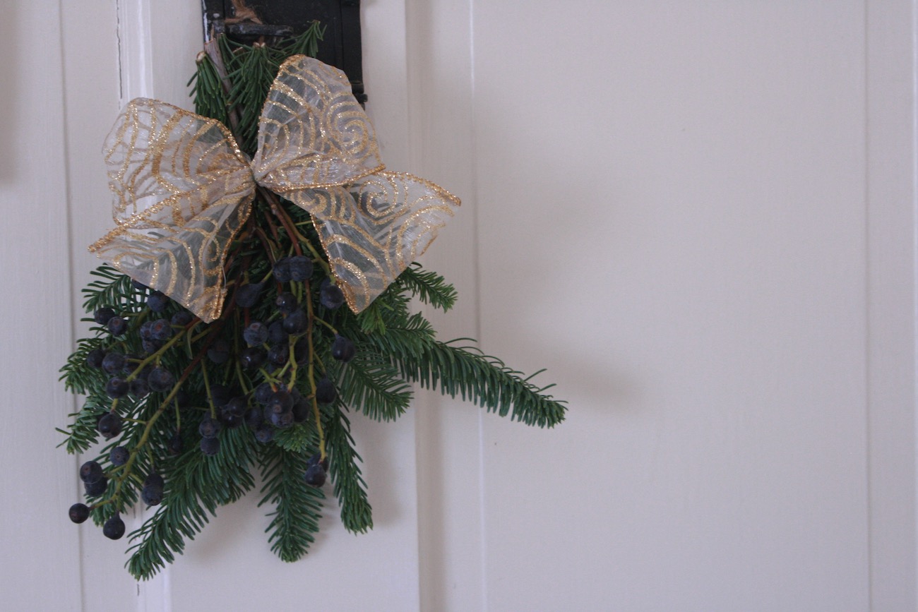 余ったもみの木で裏口用にミニスワッグ。