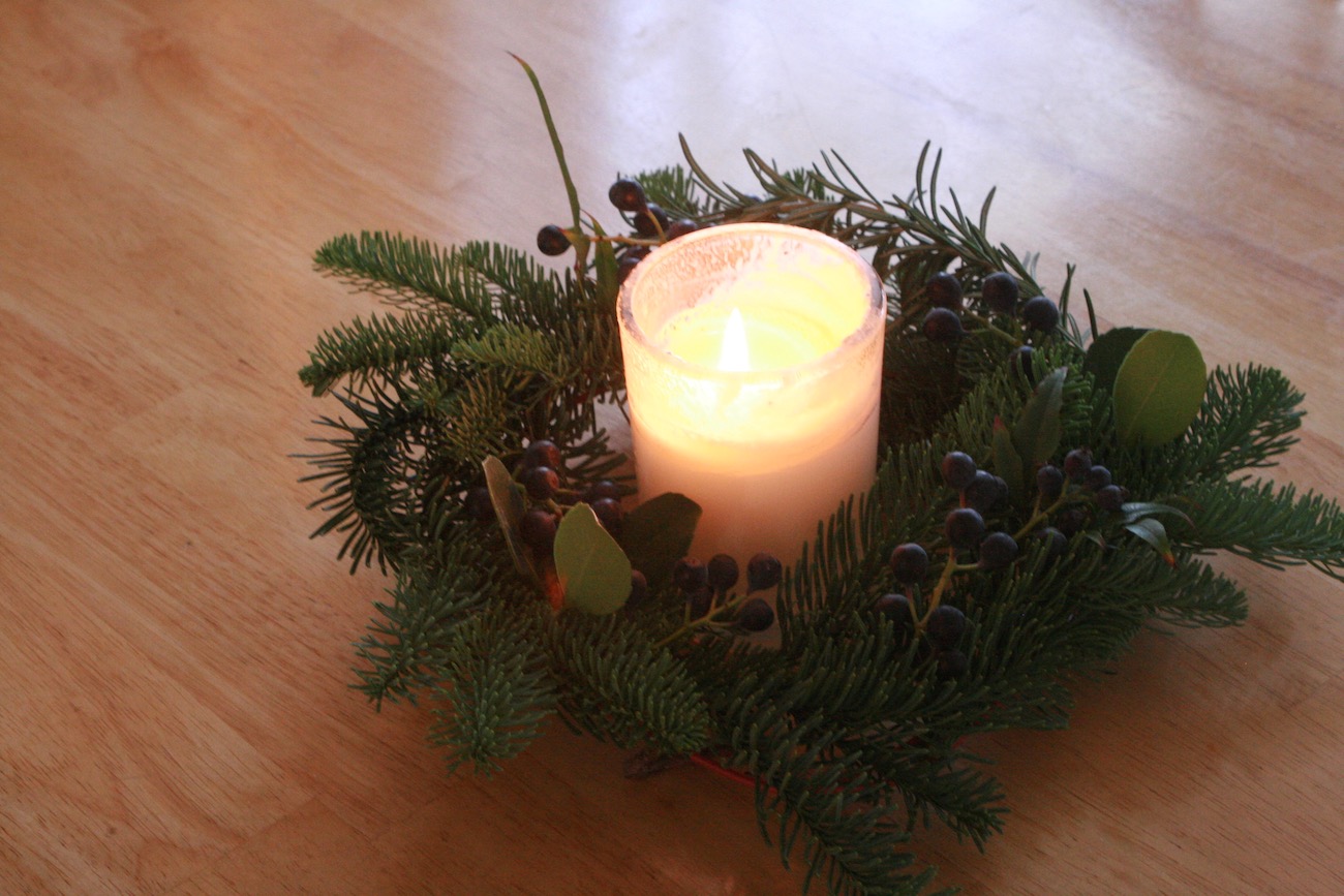 ・ 実がついた枝 (なければ、リボンや小さな松ぼっくりや木の実など、アイディア次第!)