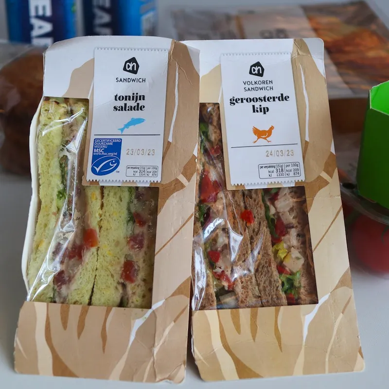 オランダを発つ日の朝用に購入したサンドイッチ(特にツナ)とサラダは、スーパーマーケットで購入したものなのにどちらも美味しくてびっくり。(イギリス ロンドンのトランジットの際にコンビニで購入したジェイミーオリバー印のサンドイッチよりも段違いに美味しかったです。)