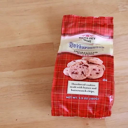 Trader Joe’s(トレーダージョーズ)のButterscotch Shortbread Wreath Cookie(バタースコッチ ショートブレッド リース クッキー)と、Butterscotch Shortbread Buttons (バタースコッチ ショートブレッド バトンズ)は、随分昔にトレジョで販売されていたクッキー。