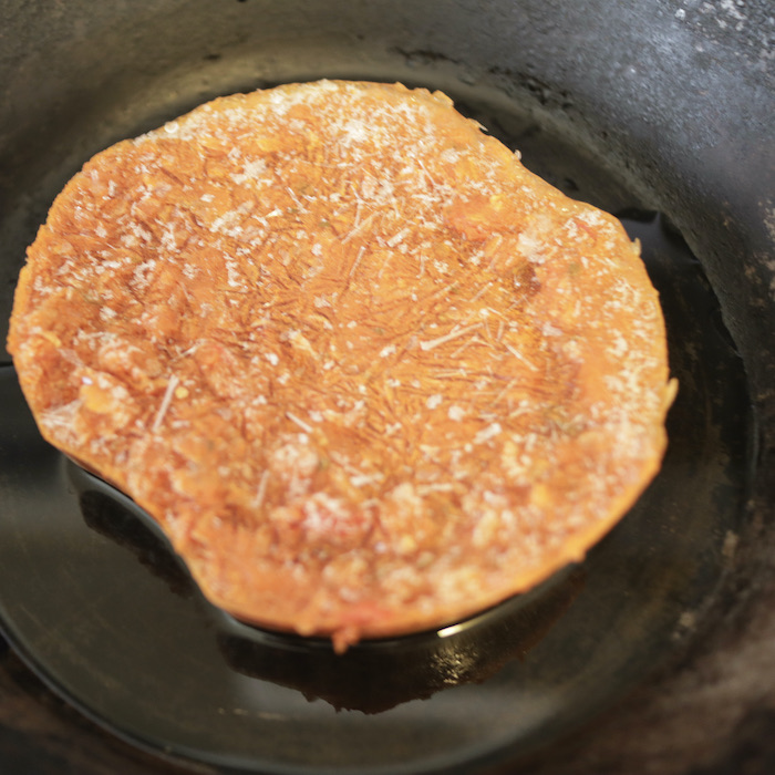 そこに凍ったままの中身をおき、弱い中火で6-7分温める。(私はこのとき、蓋をしました。)