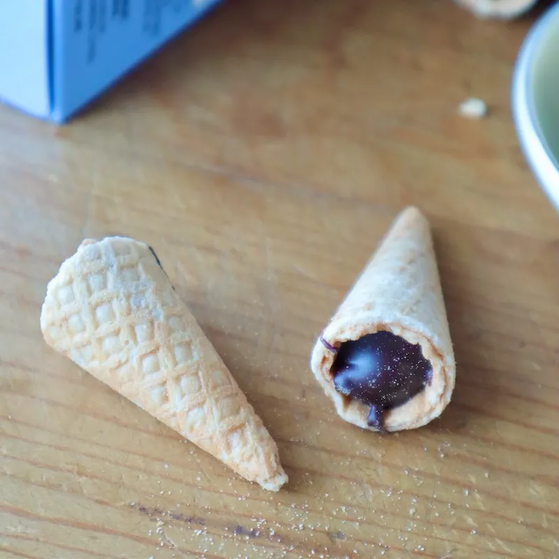 そして私はなんでも、どら焼きもお饅頭もたい焼きも皮が好き。だからもう少しアイスクリームコーンを多くして欲しかった。